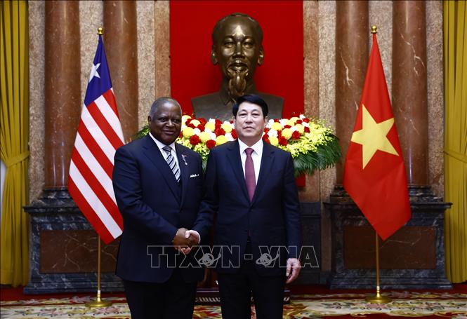 State President Luong Cuong welcomes non-resident ambassador of Liberia, Dudley McKinley Thomas. VNA Photo: Lâm Khánh