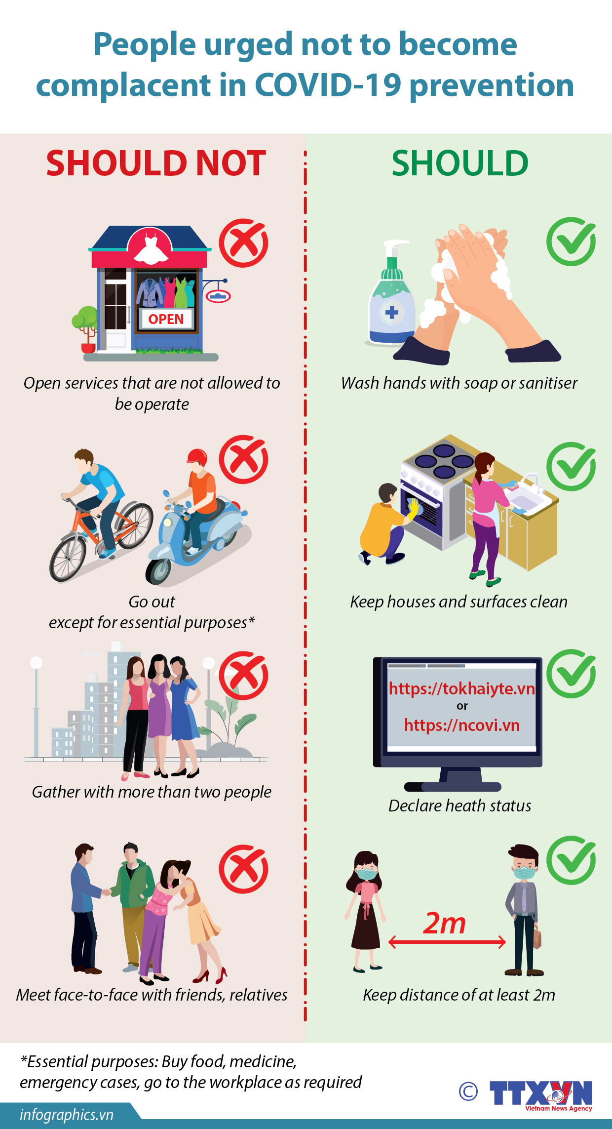 Amid the complicated developments of COVID-19 pandemic in the world as well as in the country in particular, Vietnamese people urged not to become complacent in the disease prevention work.