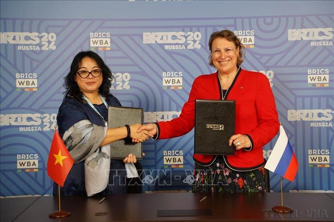 Doanh nghiệp Việt Nam và LB Nga ký thỏa thuận hợp tác tại Diễn đàn Kinh doanh Nữ giới BRICS được tổ chức ở thủ đô Moskva (Nga 4/6/2024). Ảnh: Duy Trinh - TTXVN