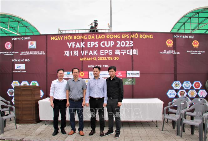 Không khí khai mạc giải đấu Bóng đá Lao động EPS Mở rộng - VFAK EPS CUP 2023. Ảnh: Khánh Vân - TTXVN tại Seoul