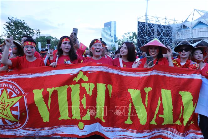 [18/12/2025 18:18:45] Hai giờ trước khi diễn ra trận chung kết bóng đá nam U22 giữa Việt Nam và Thái Lan trong khuôn khổ SEA Games 33, chiều 18/12/2025, đông đảo cổ động viên Việt Nam đã tràn ngập bên ngoài sân vận động Rajamangala với mong muốn tiếp lửa chúc đội tuyển của chúng ta toàn thắng. Ảnh: Đỗ Sinh - PV TTXVN tại Thái Lan
