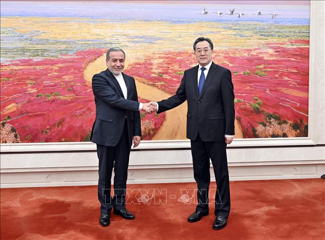 Ngày 23/4/2025, Phó Thủ tướng Trung Quốc Đinh Tiết Tường đã có cuộc gặp với Ngoại trưởng Iran Abbas Araghchi tại Bắc Kinh, nhân chuyến thăm của nhà ngoại giao Iran tới Trung Quốc. Phó Thủ tướng Trung Quốc Đinh Tiết Tường đề nghị hai bên mở rộng hợp tác thực chất, tăng cường phối hợp trong các vấn đề khu vực và quốc tế, thúc đẩy quan hệ đối tác chiến lược toàn diện Trung Quốc - Iran phát triển ổn định, lâu dài, mang lại lợi ích thiết thực cho người dân hai nước. Về phần mình, Ngoại trưởng Iran Araghchi khẳng định nước này coi trọng mối quan hệ chiến lược toàn diện với Trung Quốc, mong muốn đẩy mạnh hợp tác đôi bên cùng có lợi, tăng cường phối hợp đa phương và bảo vệ các lợi ích chung. Ảnh: TTXVN phát