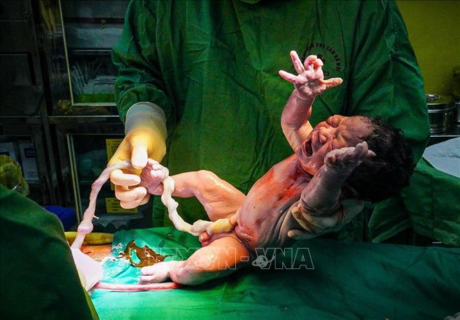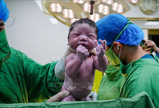 Niềm hạnh phúc của người mẹ khi được đón đứa con vừa chào đời. Ảnh: Khánh Hoà - TTXVN