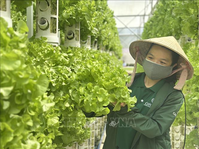Các đại biểu thăm các gian hàng, kiểm tra chất lượng sản phẩm cam Cao Phong. Ảnh: Thanh Hải - TTXVN
