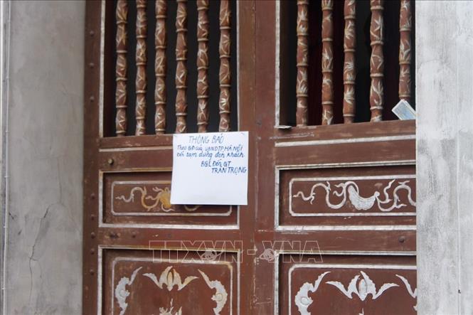Nhiều người dân đứng lễ ngay trước cửa đền Quán Thánh (quận Tây Hồ, Hà Nội) nhưng đều đeo khẩu trang và đứng có khoảng cách với người bên cạnh. Ảnh: Minh Nghĩa - TTXVN