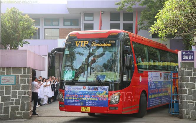 "Chuyến xe yêu thương" rời Bệnh viện Trung ương Huế. Ảnh: Mai Trang - TTXVN