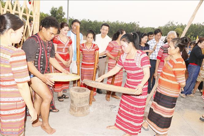 Tiết mục giã gạo tại lễ hội. Ảnh: K GỬIH-TTXVN