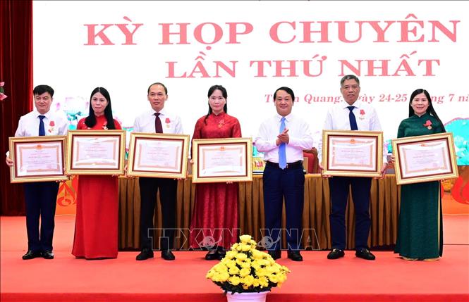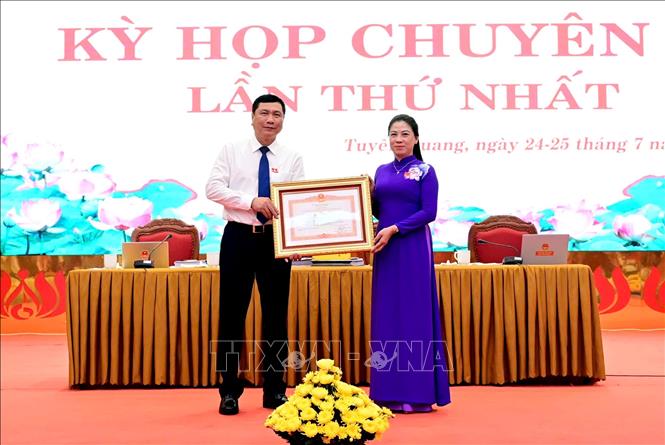 Ngày 25/7/2025, HĐND tỉnh Tuyên Quang khoá XIX khai mạc Kỳ họp chuyên đề lần thứ Nhất, thông qua Nghị quyết Kế hoạch phát triển kinh tế - xã hội, bảo đảm quốc phòng - an ninh năm 2025 và 9 Nghị quyết quan trọng khác. Ảnh: Quang Cường - TTXVN.