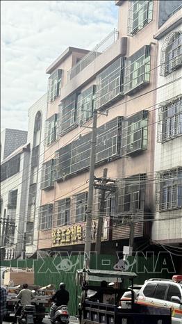 Hiện trường vụ hỏa hoạn tòa chung cư ở thành phố Sán Đầu, tỉnh Quảng Đông, Trung Quốc ngày 10/12/2025. Ảnh: THX/TTXVN