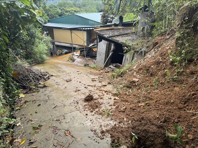 Nguy cơ tiếp tục sạt lở là rất cao tại thôn Yên Sơn, xã Ba Vì, chính quyền địa phương đã di dời người dân ra khỏi vùng nguy hiểm. Ảnh: Quốc Lũy - TTXVN