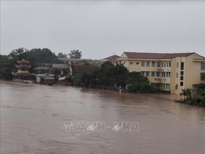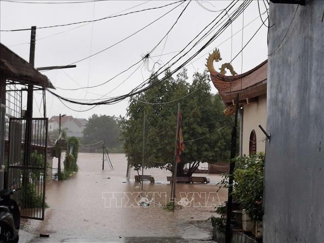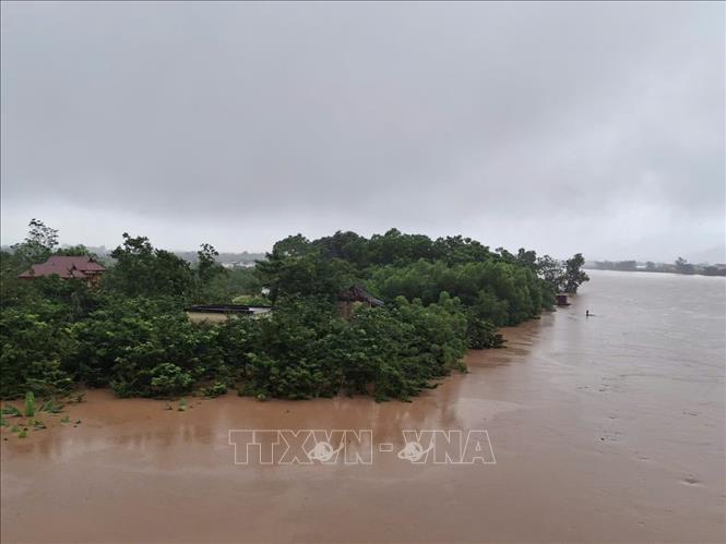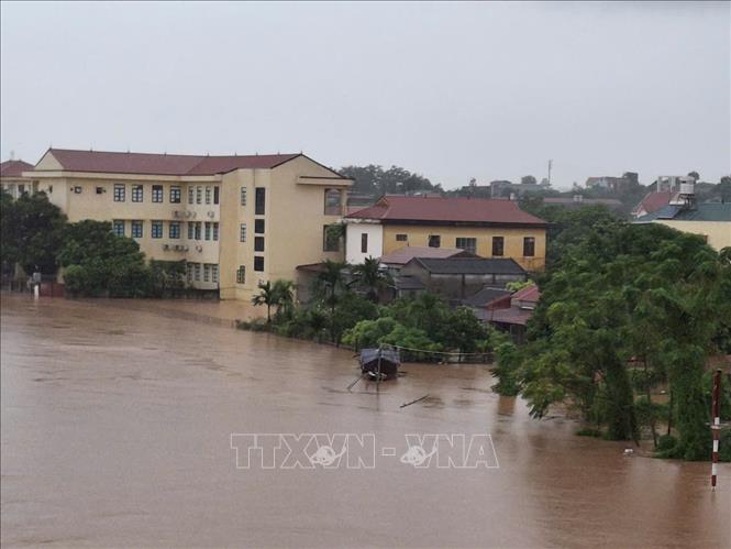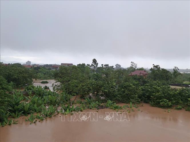 Nước sông Lục Nam, đoạn chảy qua phường Chũ, tỉnh Bắc Ninh, dâng cao gây ngập lụt cục bộ, chia cắt một số đoạn đường giao thông, khu vực dân cư. Ảnh: TTXVN phát