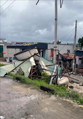 Nhiều nhà dân trên đảo Quan Lạn, Quảng Ninh, bị tốc mái. Ảnh: TTXVN phát
