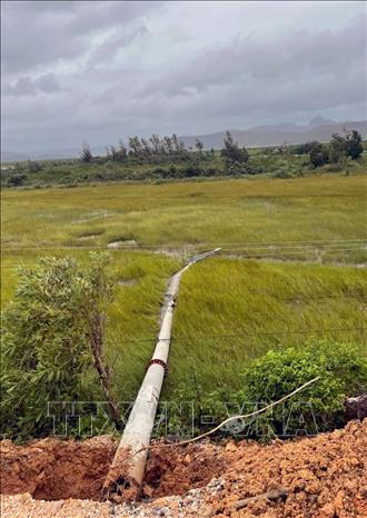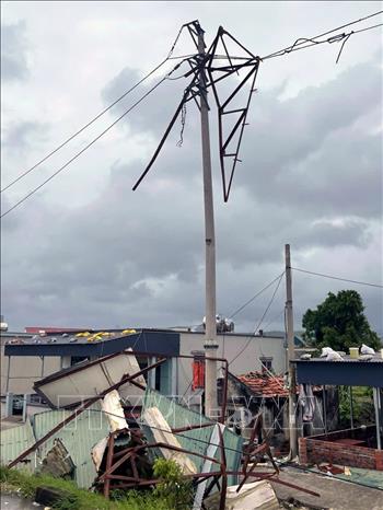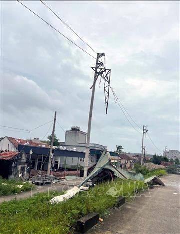 Cột điện trên đảo Quan Lạn, Quảng Ninh, bị đổ gãy. Ảnh: TTXVN phát