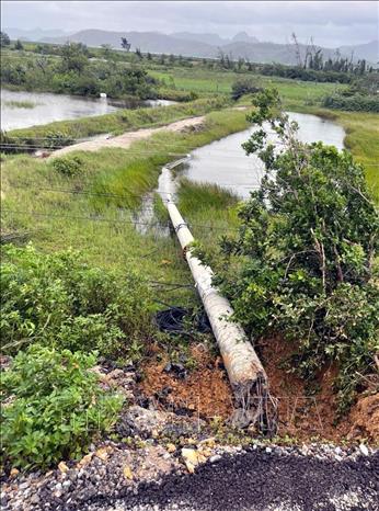 Cột điện trên đảo Quan Lạn bị đổ gãy. Ảnh: TTXVN phát