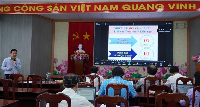 [30/09/2025 13:05:11] Sáng 30/9/2025, tại phường Rạch Giá, Sở Nông nghiệp và Môi trường tỉnh An Giang tổ chức hội nghị tập huấn nghiệp vụ thông qua hình thức trực tiếp và trực tuyến cho hơn 200 công chức, viên chức cấp xã về lĩnh vực nông nghiệp và môi trường của 102 xã, phường, đặc khu trong tỉnh. Ảnh: Văn Sĩ - TTXVN