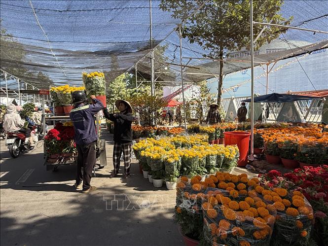 [16/02/2026 10:42:09] Sáng 16/2/2026 (29 tháng Chạp), dù sắp đến giờ trả mặt bằng cho Ban quản lý nhưng tại chợ hoa Xuân phường Đạo Thạnh - nơi tập trung nhiều hộ kinh doanh hoa kiểng Tết lớn nhất tỉnh Đồng Tháp vẫn còn một lượng hoa khá lớn chưa được tiêu thụ, dù tiểu thương và nông dân trồng hoa đã “xả hàng”, giảm giá. Ảnh: Công Trí-TTXVN