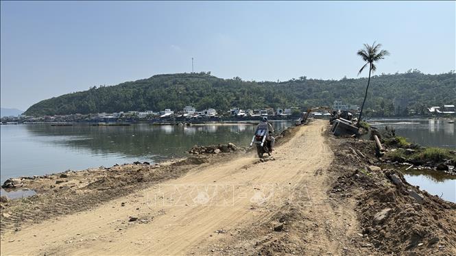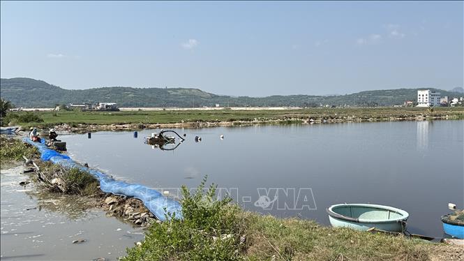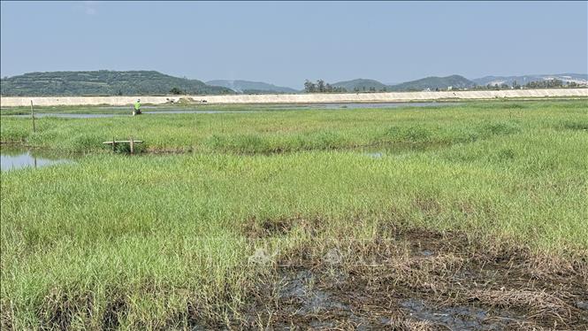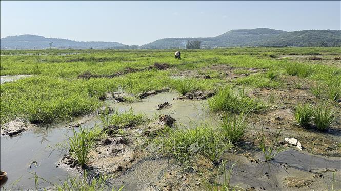 Gần 140 ha đất lúa tại xã Tuy An Đông (tỉnh Đắk Lắk) phải bỏ hoang do nhiễm mặn trong mùa vụ Đông Xuân 2025 - 2026, khi đê ngăn mặn bị mưa lũ gây hư hại hoàn toàn. Mùa vụ Hè Thu năm nay có nguy cơ tiếp tục bỏ hoang khi mức độ nhiễm mặn trở nên nghiêm trọng khiến nông dân gặp nhiều khó khăn. Địa phương hiện đã yêu cầu các đơn vị thi công khẩn trương hoàn thành đê ngăn mặn phía hạ nguồn; đồng thời đề xuất các giải pháp hỗ trợ người dân không sản xuất được trong mùa vụ này. Đối với khu vực đồng ruộng nhiễm mặn nặng, khi có nước tưới thượng nguồn đổ về, địa phương sẽ có giải pháp rửa mặn trên các cánh đồng. Ảnh: Tường Quân – TTXVN