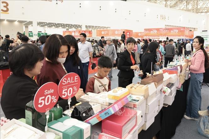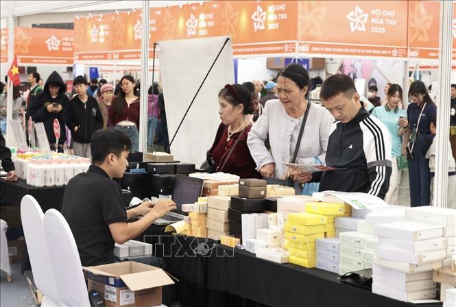 Người dân mua sắm tại Hội chợ mùa Thu 2025. Ảnh: Khánh Hoà - TTXVN