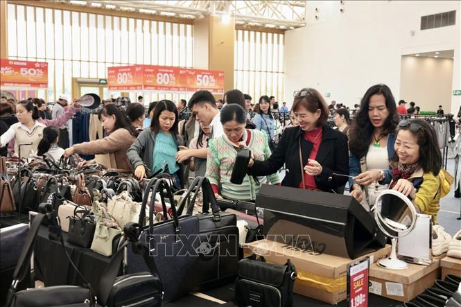 Rất đông người dân mua sắm tại hội chợ ngày cuối tuần. Ảnh: Trần Việt - TTXVN