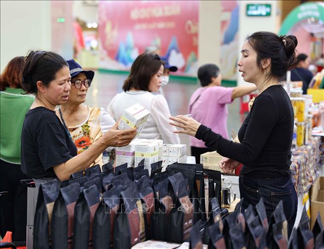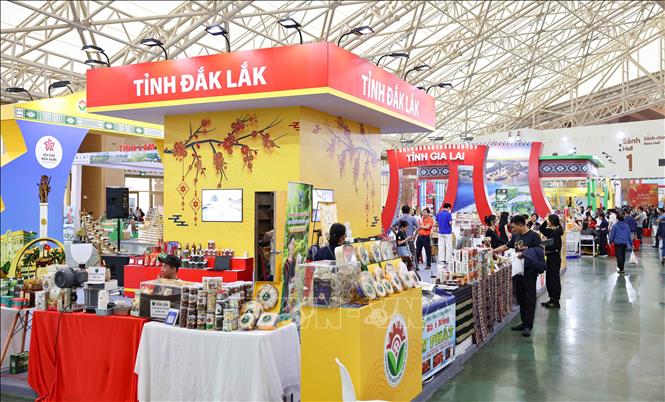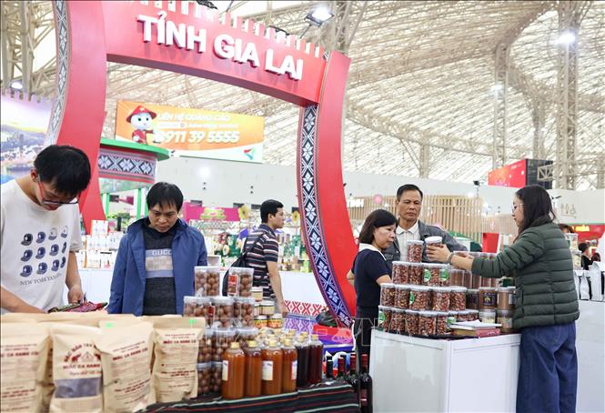 Các sản vật của Tây Nguyên được giới thiệu tại Hội chợ tới người dân và du khách. Ảnh: Thanh Tùng - TTXVN