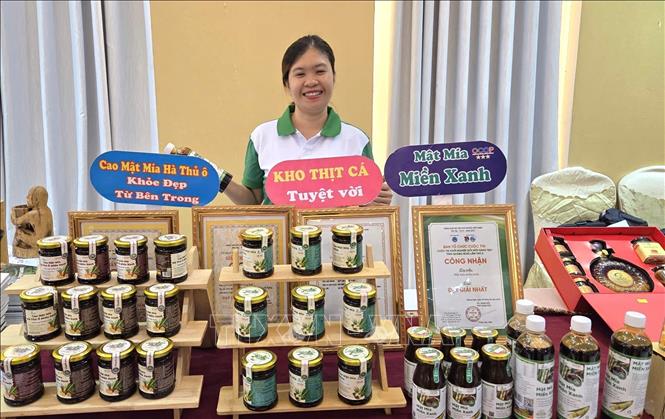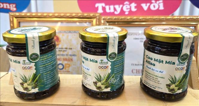 Mật mía Miền Xanh, sản phẩm đạt chuẩn OCOP hiện được cung ứng cho 20 doanh nghiệp và 60 đại lý ở các tỉnh, thành phố trong cả nước. Đồng thời, xuất khẩu chính ngạch sang New Zealand, xuất theo đường tiểu ngạch sang Mỹ, Trung Quốc. Ảnh: Đinh Hương - TTXVN