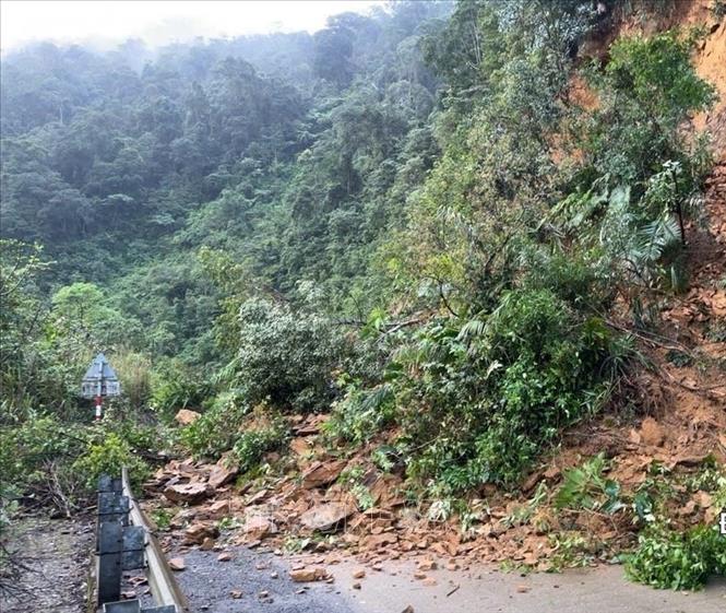 Chiều 9/2/2026, UBND xã Kim Ngân, tỉnh Quảng Trị cho biết trên địa bàn vừa xảy ra vụ sạt lở tại Km156+750 khiến giao thông ách tắc. Vị trí sạt lở có chiều dài khoảng 40m, chiều rộng 7m, chiều cao khối sạt ước 3,5m, đất đá tràn xuống mặt đường gây cản trở giao thông. Ngay sau khi tiếp nhận thông tin, Văn phòng Quản lý đường bộ II.4 đã chỉ đạo Công ty Cổ phần 483 khẩn trương huy động xe, máy móc và nhân lực để khắc phục sự cố. Đến khoảng 10 giờ cùng ngày, lực lượng chức năng đã tiến hành thu dọn đất đá, tạm thời thông tuyến một làn xe, bảo đảm phương tiện lưu thông qua khu vực. Hiện công tác theo dõi diễn biến sạt lở tiếp tục được triển khai nhằm kịp thời xử lý nếu phát sinh nguy cơ mất an toàn, nhất là trong điều kiện thời tiết diễn biến phức tạp. Ảnh: TTXVN phát