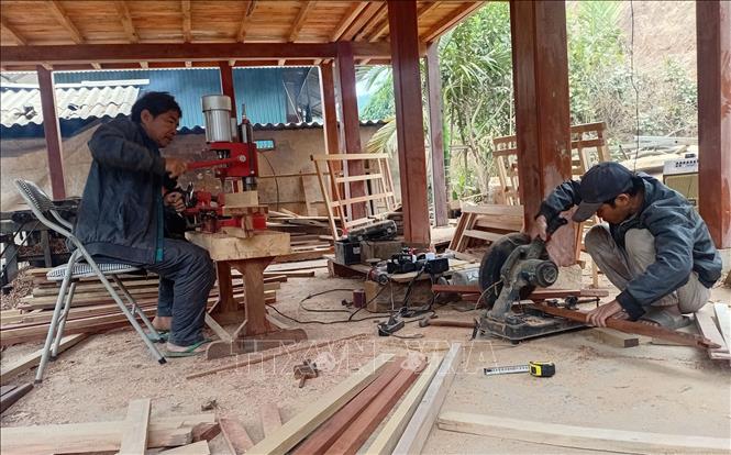 Thời gian qua, nhờ sự quan tâm của Đảng và Nhà nước, thông qua các chương trình, dự án đầu tư, xây dựng các khu tái định cư tại khu vực biên giới của tỉnh Thanh Hóa, nhiều hộ dân các xã biên giới đã được di dời khỏi vùng có nguy cơ sạt lở đất, lũ ống, lũ quét về khu tái định cư mới an toàn. Hiện, đời sống của người dân ở các khu tái định cư đang ngày càng ổn định hơn, cuộc sống ngày càng khởi sắc, họ đang dọn dẹp nhà cửa, chuẩn bị thực phẩm để đón một năm mới vui vể. Ảnh: Nguyễn Nam-TTXVN