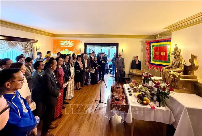 [20/04/2026 06:18:29] Ngày 19/4/2026, Đại sứ quán Việt Nam tại Ottawa, Canada đã tổ chức Lễ Giỗ tổ Hùng Vương 2026 trong không khí trang trọng và ấm cúng, góp phần duy trì bản sắc văn hóa, giáo dục truyền thống dân tộc và tăng cường tình đoàn kết của cộng đồng người Việt cùng hướng về quê hương đất nước. Ảnh: Thanh Hải - PV TTXVN tại Canada