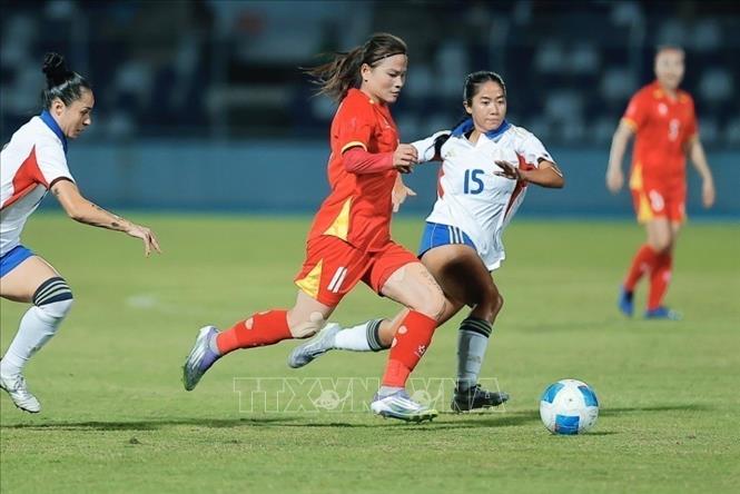 Pha triển khai tấn công của các cầu thủ nữ Việt Nam. Ảnh: Minh Quyết - PV TTXVN tại Thái Lan