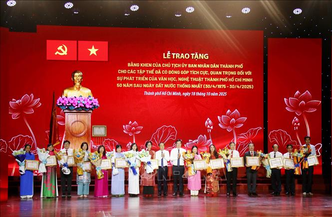 [18/10/2025 15:51:34] Ngày 18/10/2025, tại Học viện Cán bộ Thành phố (phường Bình Thạnh), Thành ủy TP. Hồ Chí Minh tổ chức Hội nghị tổng kết 50 năm nền văn học, nghệ thuật Thành phố sau ngày đất nước thống nhất (30/4/1975 – 30/4/2025). Ảnh: Thu Hương - TTXVN