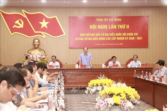 Chính trị (nói chung) Quang cảnh hội nghị. Ảnh: Huỳnh Anh - TTXVN Quang cảnh hội nghị. Ảnh: Huỳnh Anh - TTXVN Bí thư Tỉnh uỷ Cà Mau Nguyễn Hồ Hải phát biểu chỉ đạo hội nghị. Ảnh: Huỳnh Anh - TTXVN Bí thư Tỉnh uỷ Cà Mau Nguyễn Hồ Hải phát biểu chỉ đạo hội nghị. Ảnh: Huỳnh Anh - TTXVN Phó Chủ tịch HĐND tỉnh Cà Mau Bùi Tấn Bảy báo cáo kết quả công tác chuẩn bị bầu cử của Thường trực HĐND tỉnh. Ảnh: Huỳnh Anh - TTXVN Phó Chủ tịch HĐND tỉnh Cà Mau Bùi Tấn Bảy báo cáo kết quả công tác chuẩn bị bầu cử của Thường trực HĐND tỉnh. Ảnh: Huỳnh Anh - TTXVN Chú Thích ảnh: Chiều 7/1/2026, Tỉnh uỷ Cà Mau tổ chức Hội nghị lần thứ II Ban Chỉ đạo bầu cử đại biểu Quốc hội khoá XVI và bầu cử đại biểu Hội đồng nhân dân các cấp nhiệm kỳ 2026-2031. Ảnh: Huỳnh Anh - TTXVN Tin liên quan: Bầu cử Quốc hội và HĐND: Cà Mau hướng mạnh về cơ sở, lấy người dân làm trung tâm 07/01/2026 19:05