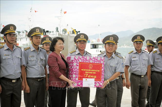 Sáng 2/8/2019, Phó Chủ tịch nước Đặng Thị Ngọc Thịnh đến thăm, làm việc với các đơn vị quân đội thuộc Vùng 4 Hải quân ở thành phố Cam Ranh, tỉnh Khánh Hòa, nhân kỷ niệm 55 năm Ngày truyền thống đánh thắng trận đầu của Hải quân nhân dân Việt Nam (2 và 5/8/1964 - 2 và 5/8/2019). Ảnh: Tiên Minh - TTXVN