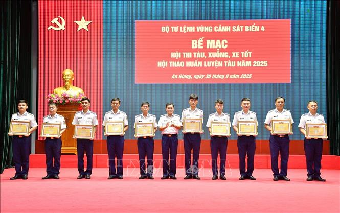 Chính trị (nói chung) Thực hành phần thi xử lý tình huống trong Hội thao huấn luyện tàu. Ảnh: TTXVN phát Thực hành phần thi xử lý tình huống trong Hội thao huấn luyện tàu. Ảnh: TTXVN phát Các thí sinh tham gia thi nội dung Điều lệnh đội ngũ có súng. Ảnh: TTXVN phát Các thí sinh tham gia thi nội dung Điều lệnh đội ngũ có súng. Ảnh: TTXVN phát Đại tá Nguyễn Thái Dương - Ủy viên Ban Thường vụ Đảng ủy, Phó Chính ủy Bộ Tư lệnh Vùng Cảnh sát biển 4 trao thưởng cho các tập thể, cá nhân đạt thành tích. Ảnh: TTXVN phát Đại tá Nguyễn Thái Dương - Ủy viên Ban Thường vụ Đảng ủy, Phó Chính ủy Bộ Tư lệnh Vùng Cảnh sát biển 4 trao thưởng cho các tập thể, cá nhân đạt thành tích. Ảnh: TTXVN phát Quang cảnh bế mạc Hội thi - Hội thao. Ảnh: TTXVN phát Quang cảnh bế mạc Hội thi - Hội thao. Ảnh: TTXVN phát Kiểm tra, đánh giá nội dung thi công tác bảo quản, vận hành máy móc ở khoang máy của tàu. Ảnh: TTXVN phát Kiểm tra, đánh giá nội dung thi công tác bảo quản, vận hành máy móc ở khoang máy của tàu. Ảnh: TTXVN phát Chú Thích ảnh: [30/09/2025 19:02:03] Chiều 30/9, tại Đặc khu Phú Quốc, tỉnh An Giang, Bộ Tư lệnh Vùng Cảnh sát biển 4 bế mạc Hội thi tàu, xuồng, xe tốt - Hội thao huấn luyện năm 2025. Ảnh: TTXVN phát Tin liên quan: Cảnh sát biển vững vàng trong công cuộc bảo vệ chủ quyền biển đảo của Tổ quốc 30/09/2025 18:49
