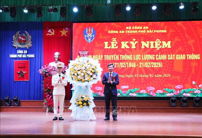 Chiều 2/2/2026, Công an thành phố Hải Phòng đã long trọng tổ chức lễ kỷ niệm 80 năm ngày truyền thống lực lượng Cảnh sát giao thông (21/2/1946 – 21/2/2026). Trong thời gian tới, lực lượng cảnh sát giao thông tiếp tục tập trung đảm bảo đảm trật tự, an toàn giao thông trên địa bàn theo phương châm 5 rõ “rõ người, rõ việc, rõ trách nhiệm, rõ thời gian, rõ sản phẩm”; phấn đấu kéo giảm tai nạn giao thông 8% cả ba tiêu chí so với cùng kỳ, không để xảy ra tai nạn đặc biệt nghiêm trọng; giảm ùn tắc cục bộ, không để xảy ra ùn tắc giao thông kéo dài, đua xe trái phép và phức tạp khác phát sinh... Ảnh: Mạnh Tú - TTXVN