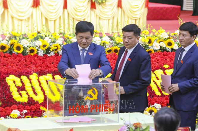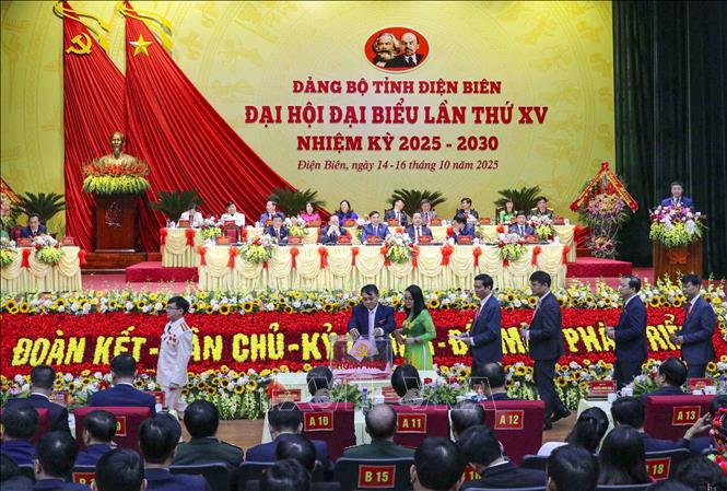 Đại biểu bỏ phiếu bầu Ban Chấp hành Đảng bộ tỉnh Điện Biên khóa XV, nhiệm kỳ 2025 - 2030. Ảnh: Xuân Tư - TTXVN