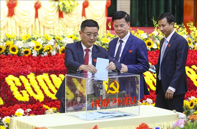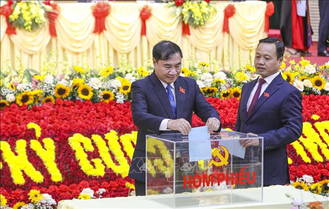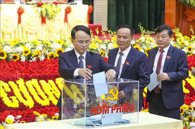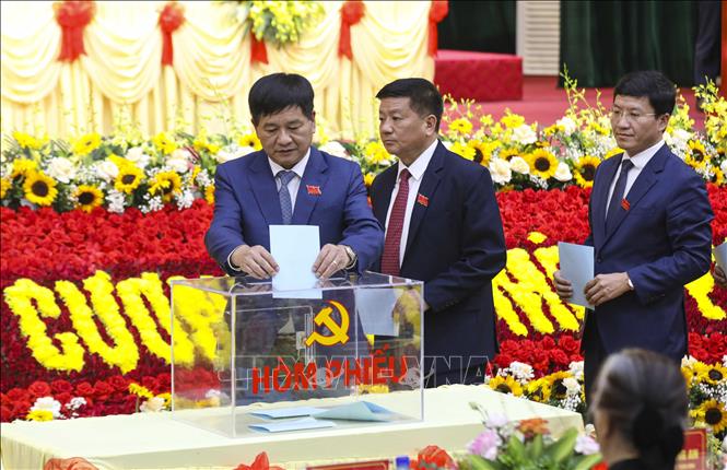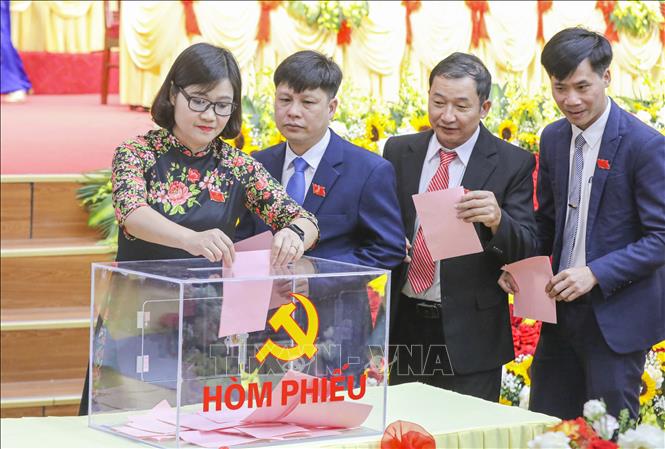 Đại biểu bỏ phiếu bầu Đoàn đại biểu dự Đại hội XIV của Đảng. Ảnh: Xuân Tư - TTXVN