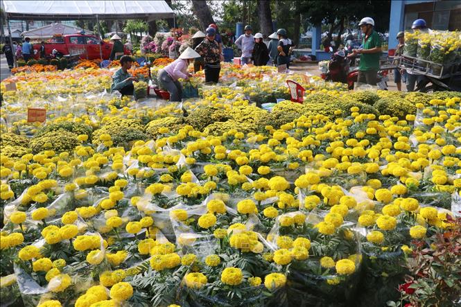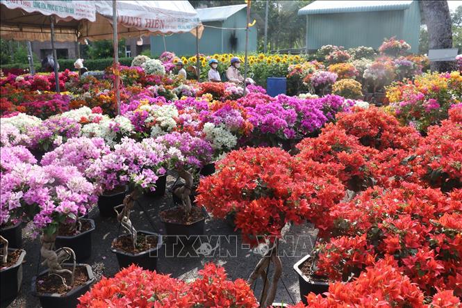 Chợ hoa Xuân Ất Tỵ năm 2025 tại thành phố Cao Lãnh, tỉnh Đồng Tháp được bày bán trong Khu Liên hợp Thể dục Thể thao tỉnh Đồng Tháp thuộc phường Mỹ Phú, với 949 lô bán các loại hoa kiểng, dưa hấu, các loại trái cây chưng Tết. Ảnh : Nguyễn Văn Trí - TTXVN