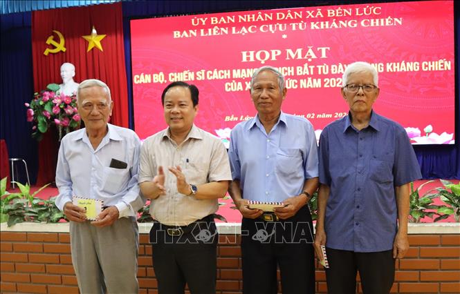 Các thành viên Ban Liên lạc cựu kháng chiến Bến Lức tham dự buổi họp mặt cán bộ, chiến sĩ cách mạng bị địch bắt tù đày trong kháng chiến. Ảnh: Đức Hạnh - TTXVN