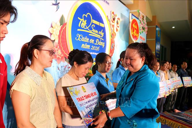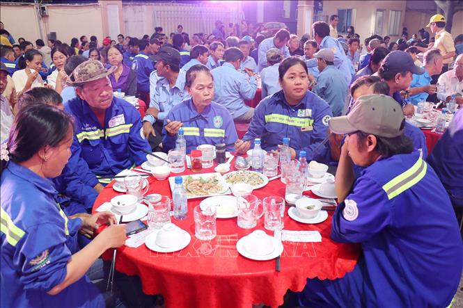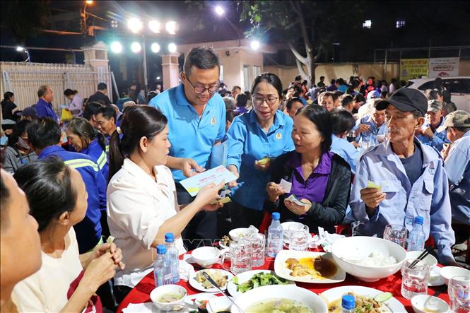 Đông đảo đoàn viên, người lao động dùng Bữa cơm Công đoàn trong chương trình “Tết Sum vầy – Xuân ơn Đảng” năm 2026. Ảnh: Thanh Vũ-TTXVN