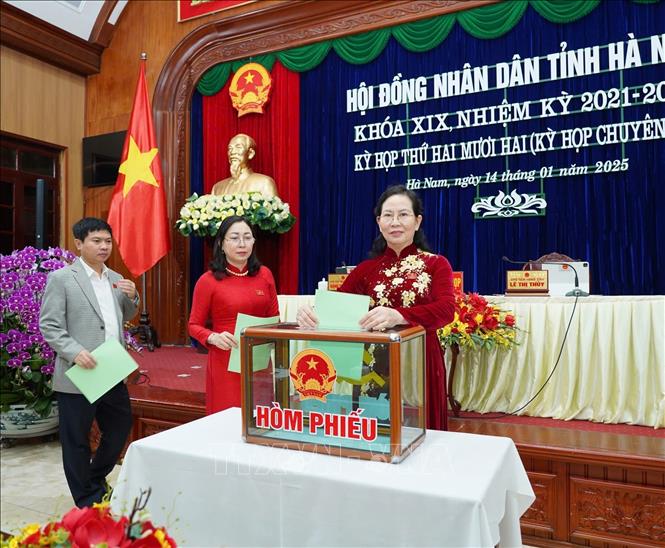 Ngày 14/1/2025, tại Kỳ họp thứ 22 (Kỳ họp chuyên đề) HĐND tỉnh Hà Nam khóa 19, các đại biểu HĐND tỉnh đã xem xét, thảo luận và thông qua 18 Nghị quyết quan trọng trong phát triển kinh tế - xã hội tại địa phương. Ảnh: Thanh Tuấn - TTXVN