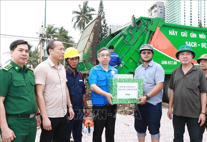 Dưới sự phân công của Bộ Chính trị, chia sẻ với những mất mát, thiệt hại của tỉnh Khánh Hoà, Thành phố Hồ Chí Minh đang tập trung tổng lực, chung sức, đồng lòng, hỗ trợ nhân lực, vật lực để giúp đỡ tỉnh Khánh Hòa khắc phục thiệt hại do thiên tai, mưa lũ. Ảnh: Phan Sáu - TTXVN