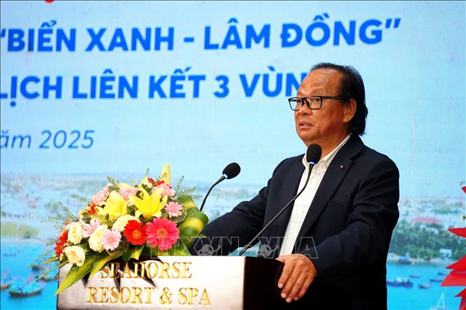 [23/10/2025 17:32:39] Chiều 23/10/2025, tại phường Mũi Né (tỉnh Lâm Đồng) Hiệp hội Du lịch Bình Thuận (tỉnh Lâm Đồng) tổ chức Hội nghị nâng cao năng lực điểm đến “Biển xanh- Lâm Đồng” và thúc đẩy phát triển du lịch liên kết 3 vùng, với sự tham dự của gần 100 đại biểu đại diện các địa phương, chi hội, câu lạc bộ, doanh nghiệp du lịch trên địa bàn tỉnh Lâm Đồng. Ảnh: Hồng Hiếu- TTXVN