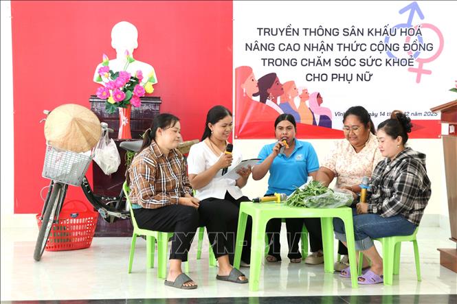 [14/12/2025 18:15:21] Ngày 14/12/2025, tại phường Trà Vinh, tỉnh Vĩnh Long, Tổ chức ActionAid Quốc tế tại Việt Nam phối hợp với Dự án An sinh xã hội Việt Nam (AFV), Ban Quản lý Chương trình Hỗ trợ phát triển tổ chức hoạt động truyền thông, sân khấu hóa nâng cao nhận thức cho cộng đồng trong chăm sóc sức khỏe phụ nữ, thu hút đông đảo người dân địa phương tham gia. Ảnh: Thanh Hòa- TTXVN