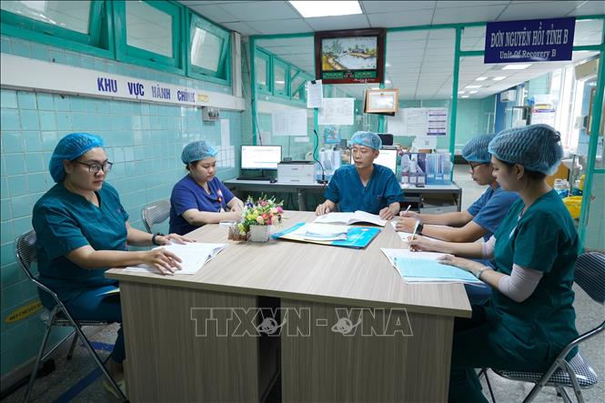 Chăm sóc bệnh nhân sau ca mổ tại khoa Gây mê hồi sức. Ảnh: Thanh Thuỷ-TTXVN