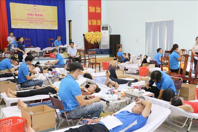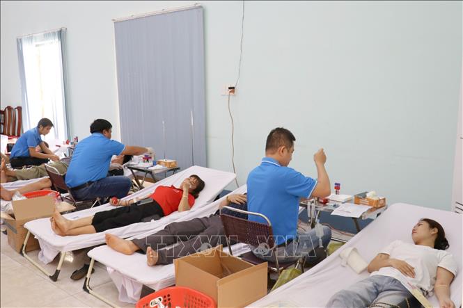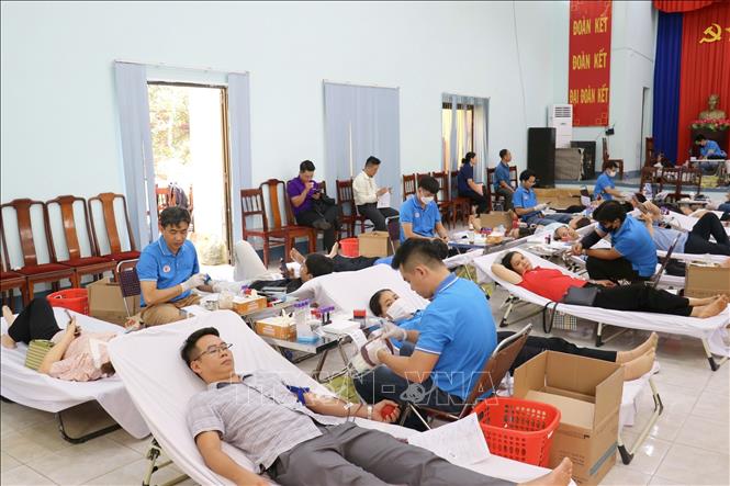 Đông đảo cán bộ, công chức, viên chức, tình nguyện viên, đoàn viên, hội viên, thanh niên hăng hái tham gia hiến máu tình nguyện. Ảnh: Nhật Bình - TTXVN.