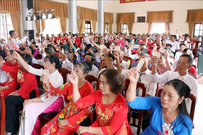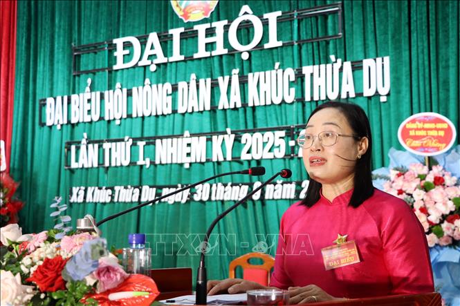 [30/09/2025 16:50:16] Chiều 30/9/2025, Hội Nông dân xã Khúc Thừa Dụ, thành phố Hải Phòng tổ chức Đại hội Đại biểu lần thứ nhất, nhiệm kỳ 2025-2030. Đây là đại hội được Hội Nông dân thành phố Hải Phòng lựa chọn là đại hội điểm cấp cơ sở để rút kinh nghiệm trước khi tổ chức đại hội Hội Nông dân các xã, phường, đặc khu trên toàn thành phố. Ban Thường vụ Hội Nông dân thành phố Hải Phòng đã công bố quyết định chỉ định Ban chấp hành Hội Nông dân xã Khúc Thừa Dụ khóa I, nhiệm kỳ 2025-2030 gồm 25 đồng chí; Ban Thường vụ Hội Nông dân xã gồm 7 đồng chí. Đồng chí Phạm Thị Ngọc Hân được chỉ định giữ chức Chủ tịch Hội Nông dân xã Khúc Thừa Dụ. Ảnh: Mạnh Tú - TTXVN