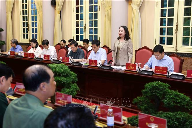 [30/09/2025 17:22:22] Chiều 30/9/2025, tại Phủ Chủ tịch, Ban tổ chức Đại hội Thi đua yêu nước toàn quốc lần thứ XI họp phiên thứ hai dưới sự chủ trì của Phó Chủ tịch nước Võ Thị Ánh Xuân, Phó Chủ tịch thứ nhất Hội đồng Thi đua - Khen thưởng Trung ương, Trưởng Ban tổ chức Đại hội. Ảnh: An Đăng - TTXVN