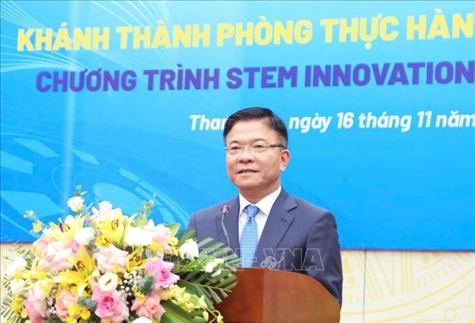 Phó Thủ tướng Lê Thành Long dự Lễ khánh thành phòng thực hành giáo dục STEM do Tập đoàn Công nghiệp - Năng lượng quốc gia tài trợ cho Trường THPT Chuyên Lam Sơn. Ảnh: TTXVN phát