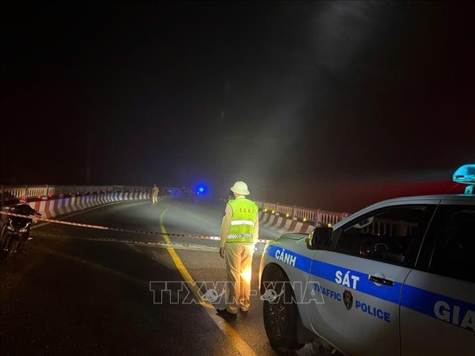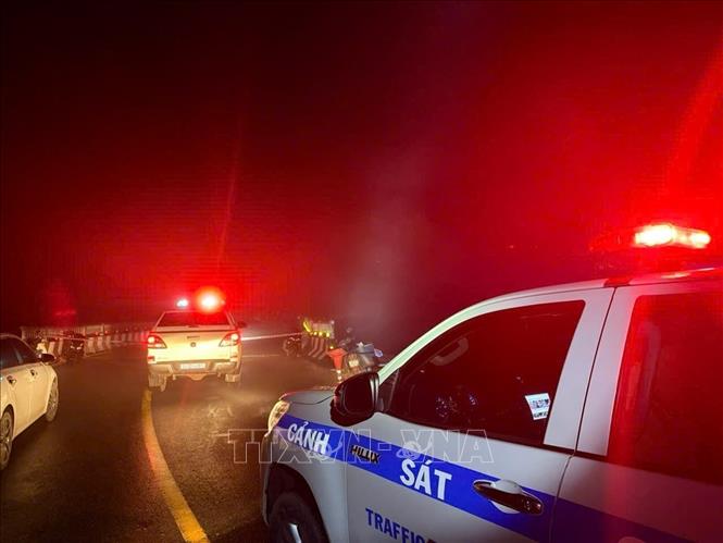 Khoảng 21 giờ ngày 28/10/2025, Phòng cảnh sát giao thông Công an tỉnh Lâm Đồng phối hợp với lực lượng của địa phương đã tiến hành phong tỏa hai chiều trên quốc lộ 20 (đoạn từ phường Xuân Trường – Đà Lạt nối với xã D’ran, Lâm Đồng) do sạt lở tại Km262+400 trên đèo D’ran xảy ra vào tối cùng ngày. Ảnh: TTXVN phát