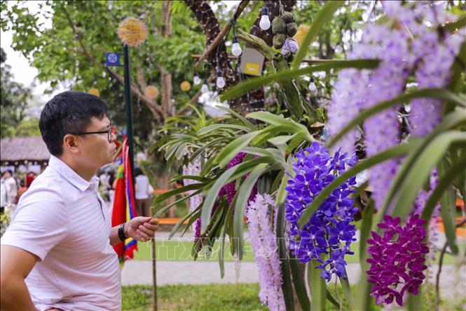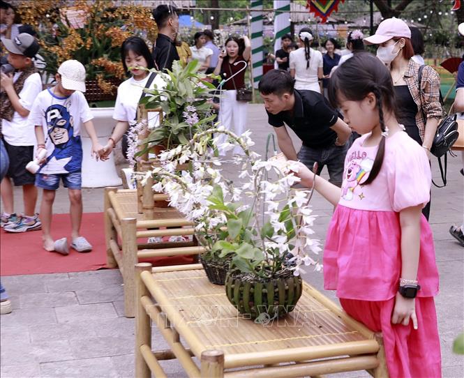 Du khách say mê chiêm ngưỡng vẻ đẹp tinh tế của các loài lan quý. Ảnh: Hoàng Hùng – TTXVN